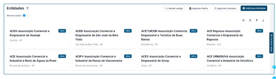 As listas em geral podem ser agora – opcionalmente – apresentadas no formato de cartões, de acordo com a preferência do usuário. A alternância é comandada no menu no canto superior direito.
